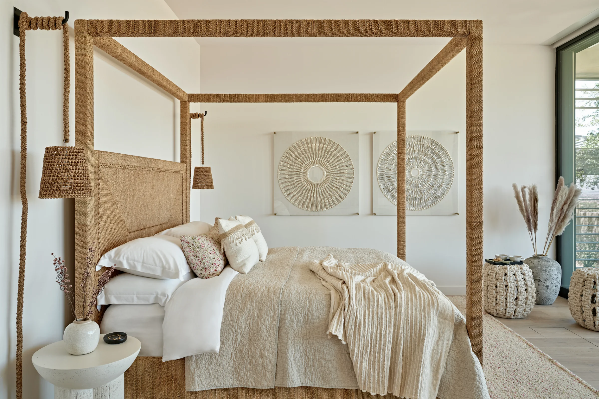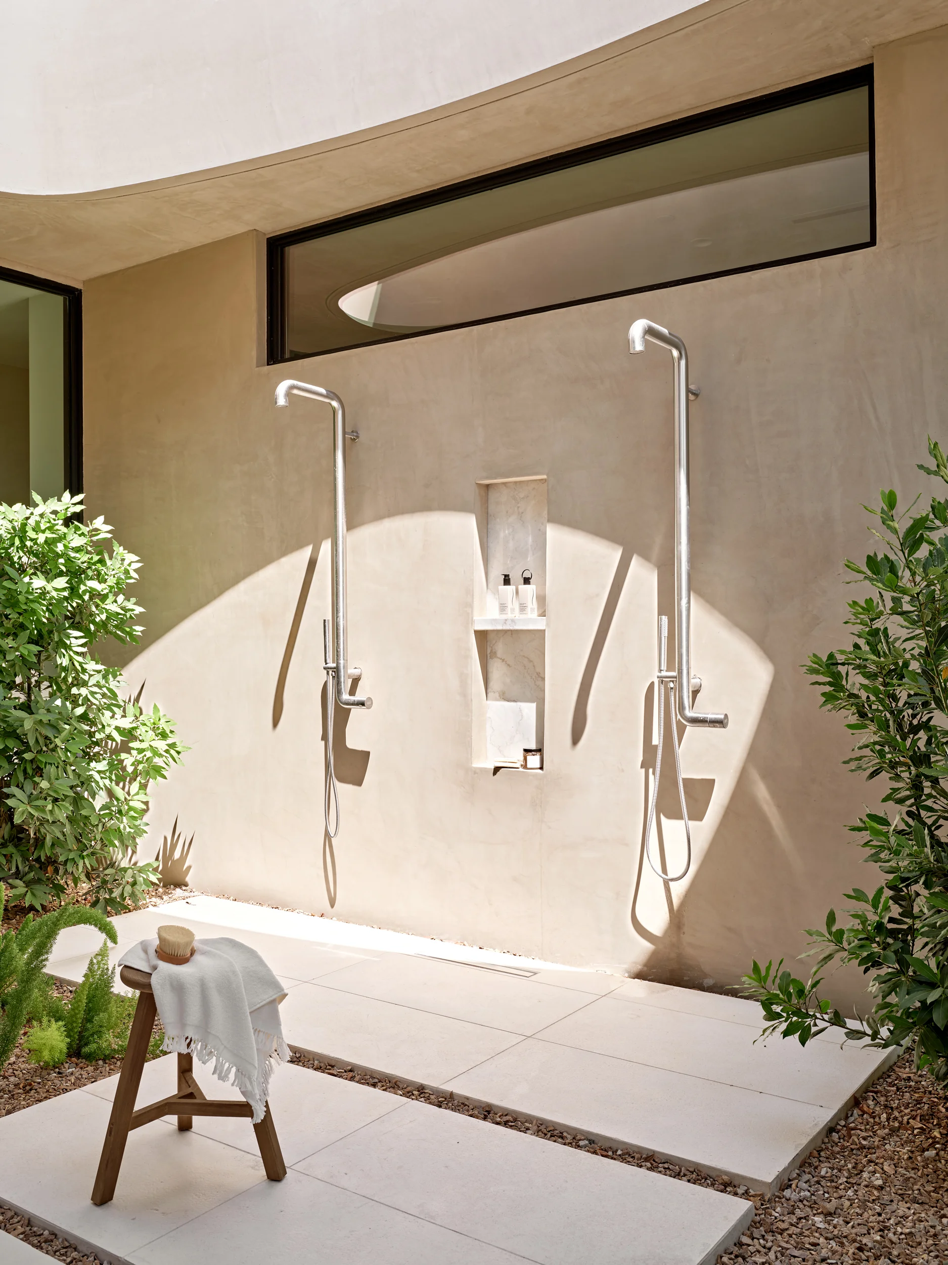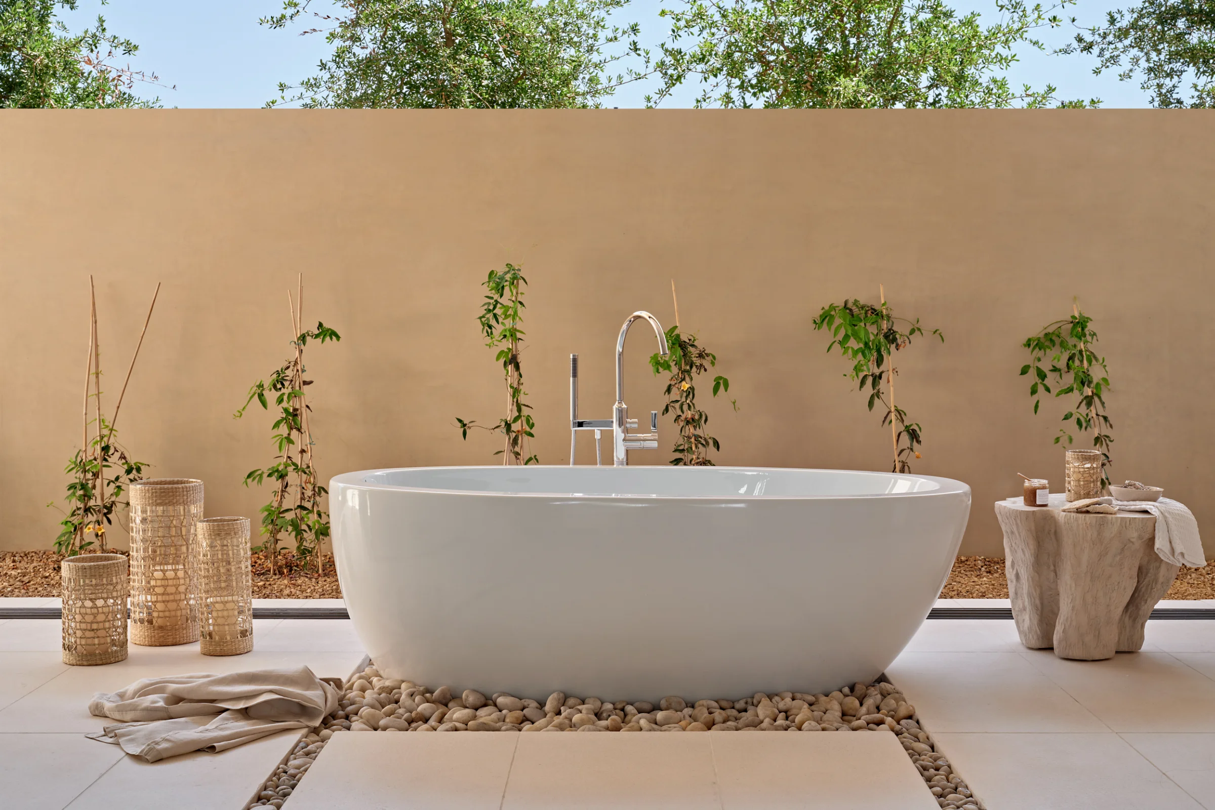 Our client envisioned a Maldivian spa-like atmosphere, emphasising natural textures and an organic feel throughout the property.